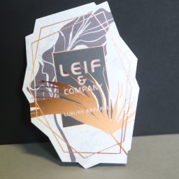 Produce tarjetas de presentación y folletos con bordes decorativos, envases comerciales con ventanas troqueladas y etiquetas exclusivas para presentar tus productos con impacto.