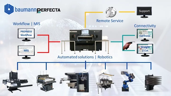 Las interfaces de las guillotinas de alta velocidad baumannperfecta son abiertas y, por lo tanto, permiten la conexión con diferentes sistemas MIS.