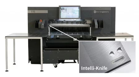 El sistema Intelli-Knife de Hagedorn GmbH puede adaptarse fácilmente a todas las guillotinas baumannperfecta. Durante la instalación, el chip de la cuchilla se programa con los parámetros específicos del cliente, además de los datos básicos, y se comunica a través de una cabeza de lectura/escritura. El chip RFID está firmemente integrado en cada cuchilla y transmite todos los datos relevantes a una aplicación recientemente desarrollada, que garantiza un proceso de producción óptimo desde la planificación del pedido hasta el archivado tras la finalización.
