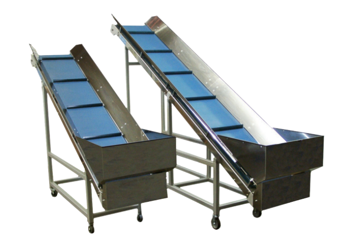-La cinta transportadora está fabricada en material plástico eléstico (PVC) con canto ondulado en ambos lados y con tacos de transporte
