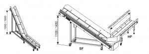 -Las series indicadas para mayor productividad están desarrolladas con 2 piezas: el recogedor que va debajo de la guillotina con longitudes desde 190 cm hasta 390 cm y el elevador que conduce el desperdicio hasta la cesta recogedora, con 110 y 145 cm. Se pueden colocar en línea o en 90º