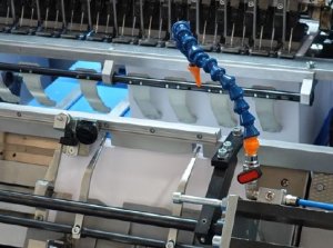 Control de la secuencia de las hojas (Lector de códigos 1D / 2D):  Sistema de control de la secuencia de las hojas realizado por la cámara de alta velocidad OMRON MICROHAWK V430-F. El sistema de lectura de código de barras o Data Matrix, garantiza un alto nivel de control filtrando todos los posibles problemas y evita con precisión falsas alarmas y paradas innecesarias a través de las mediciones continuas realizadas en cada hoja.