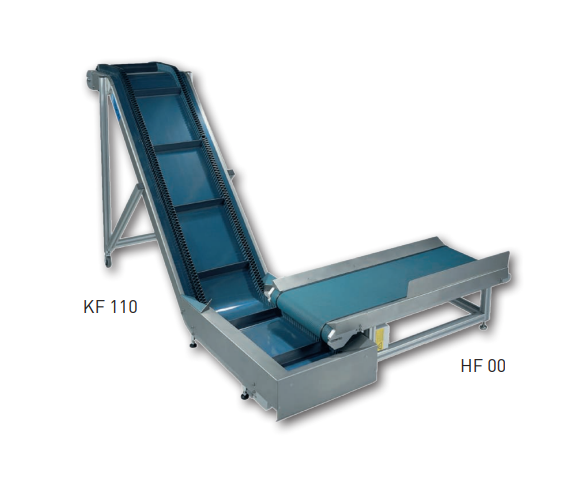 - Cinta transportadora de PVC elástico: equipada con cantos ondulados y tacos de arrastre para un transporte fluido del residuo hacia el contenedor.