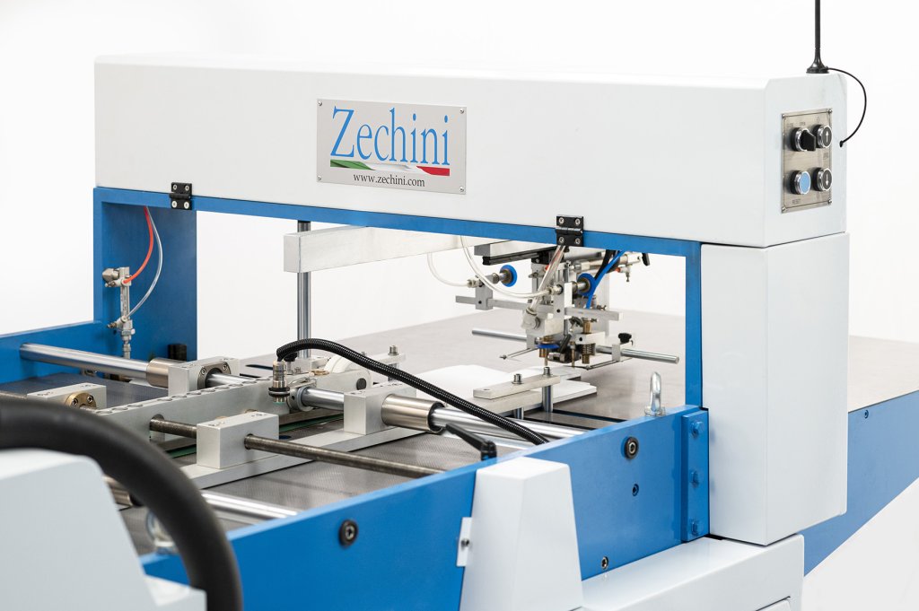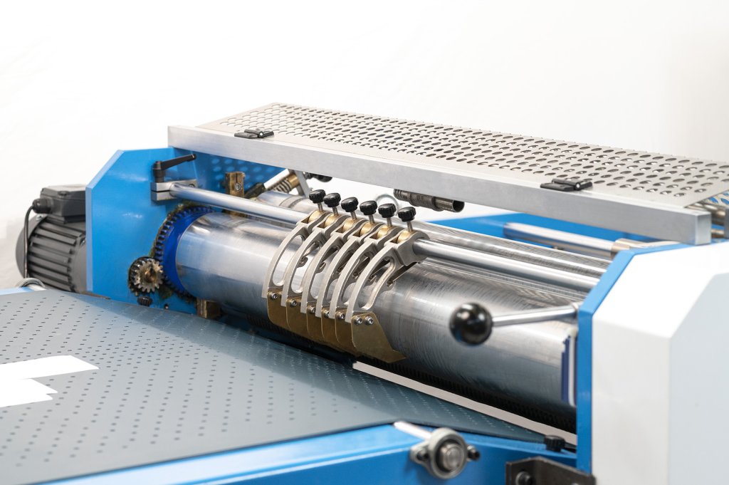 - Configuración con rebordeo: se añade una unidad con cierre de esquinas, rebordeo de los cuatro lados y prensa de rodillos automáticamente.