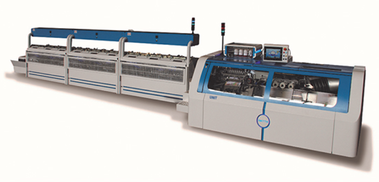 Esta solución automatizada está diseñada para operaciones pequeñas y medianas, y se distingue por la alzadora patentada que brinda la ventaja de cargar una o dos signturas en cada estación de alzado, dependiendo de su tamaño. Gracias a esta característica, el espacio requerido para esta línea se reduce drásticamente y solo se necesita un operador para ejecutar todo el sistema de producción.