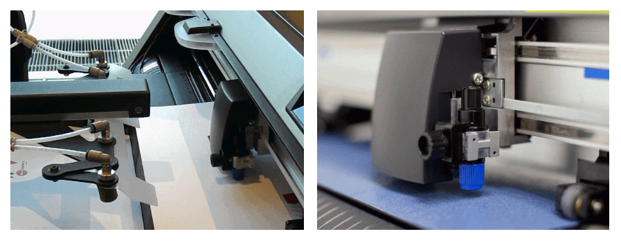 La cuchilla del plotter está diseñada con dos posiciones. En el modo de troquelado funciona a través de una abertura que evita el desgaste de la cuchilla mientras corta el material.