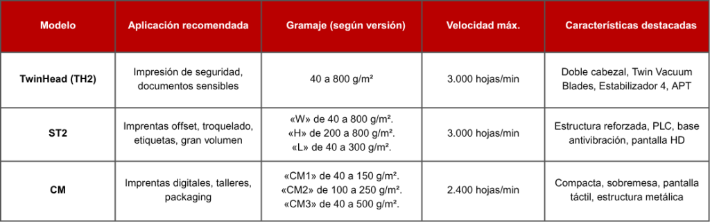 No todas las contadoras son iguales, ni todas las empresas tienen las mismas necesidades. Elegir la contadora adecuada implica valorar múltiples factores: el tipo y gramaje del material, el tamaño de hoja, el grado de sensibilidad del trabajo, el volumen diario de producción y el nivel de automatización o integración requerido con otros equipos (como guillotinas, joggers o sistemas de clasificación).
