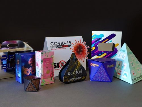 DUPLO ofrece creatividad sin límites de acabado y personalización con sus equipos de multiacabado  (hendido, corte, semicorte y perforado), barnizadora UV con reserva y sus exitosas mesas de corte.