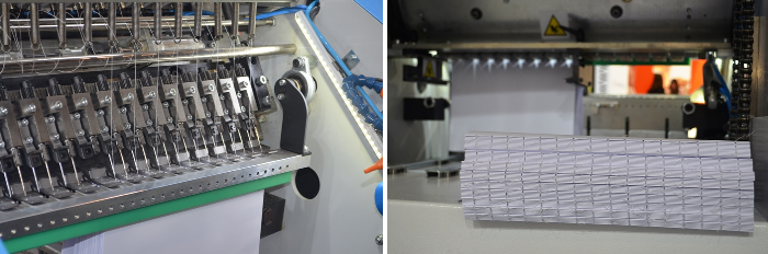 - La DX 70 PLUS con alimentador totalmente automático de hojas de tamaños hasta 720 x 720 mm. Con doble sistema de plegado, en bolsa y posteriormente en cruz, con acumulador de pliegos para formar las signaturas (de 4 y 8 páginas) que serán cosidas.