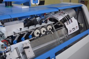 La línea consiste en una cosedora de hilo par libros automática SMYTH FF-280 4D de última generación conectada con una alzadora de hasta 18 estaciones alzado con carga vertical. La línea también está equipada con el dispositivo COURIER que ofrece compactación y adaptabilidad que la hacen muy buena y verdaderamente única.
