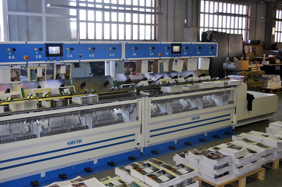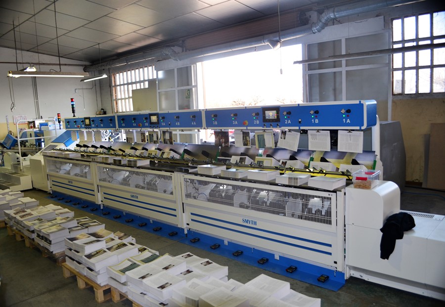 La línea consiste en una cosedora de hilo par libros automática SMYTH FF-280 4D de última generación conectada con una alzadora de hasta 18 estaciones alzado con carga vertical. La línea también está equipada con el dispositivo COURIER que ofrece compactación y adaptabilidad que la hacen muy buena y verdaderamente única.