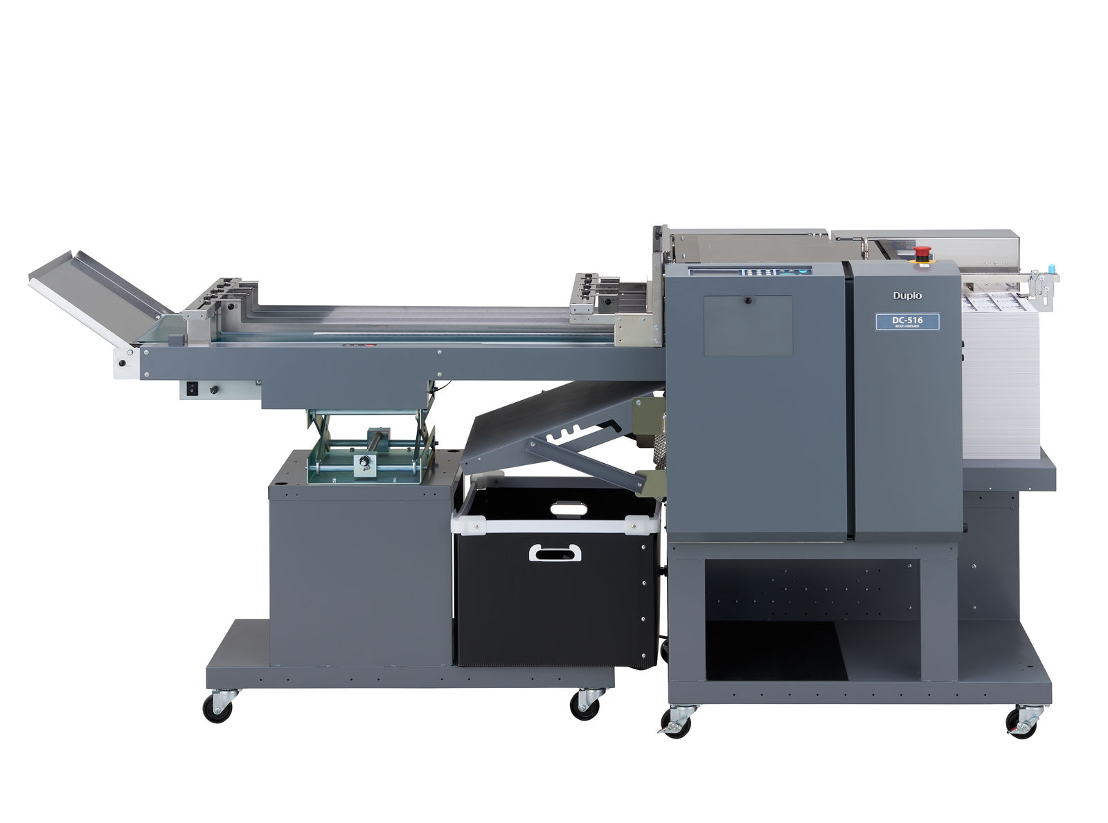 A primera vista, la DC-516 se parece mucho a uno de los otros exitosos equipos de acabados multifunción Duplo. Pero un examen exhaustivo, señala que el cliente tiene la opción de adquirir la carcasa con los elementos base y luego completarla sólo con las opciones que necesita. La principal demanda puede ser refilar y cortar para hacer tarjetas de visita. Pero las opciones adicionales pueden convertir el DC-516 en, por ejemplo, una hendedora capaz de hace en una hoja hendidos por ambos lados en un solo paso. También puede producir una portada para un libro perfectamente encuadernado, un folleto o tríptico. De la misma manera, las opciones adicionales permiten realizar una amplia gama de tareas de acabado tales como hendido, semi-corte y perforado, pudiendo ser éste selectivo a lo largo y ancho de la hoja. Evitando la necesidad de comprar más de una máquina.