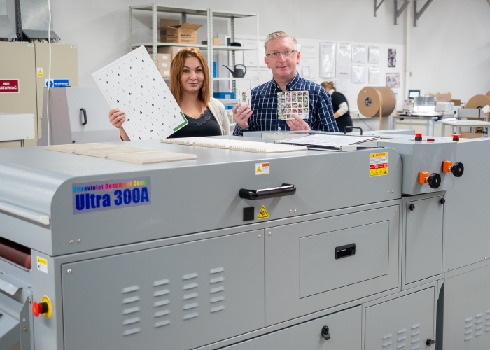 CEWE Polonia invierte en la máquina barnizadora acuosa ULTRA para producir fotobooks y cartas de juego para niños.