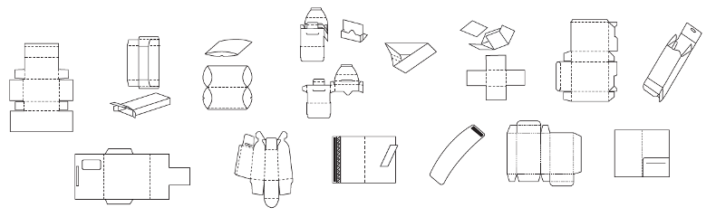 La línea digi-mollPAK es ideal para producir cajas de línea recta, porta llaves de habitación, carpas de mesa, fundas, estuches para CD, cajas de software de computadora y carpetas de presentación.