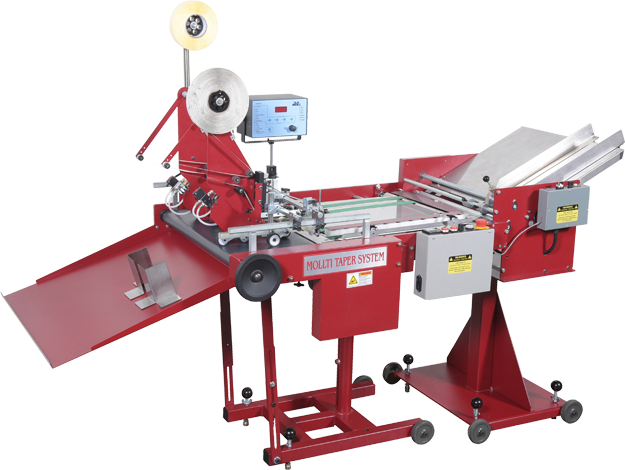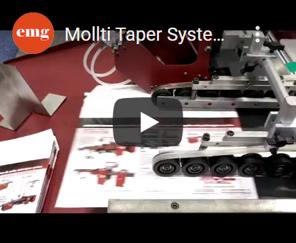 El sistema Mollti-Taper tiene una huella económica que permite que el sistema se instale junto a equipos de acabado, tanto offset como digital. La máquina tiene un sistema de registro incorporado para garantizar una aplicación precisa en cada producto. El tiempo de configuración entre trabajos es inferior a unos pocos minutos. La larga sección de alimentación y de la banda permite formar, doblar, encintar e insertar.