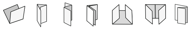 Tipos de plegado V (arriba/abajo), C, Z, Ventana doble paralela, Ventana cerrada*.
