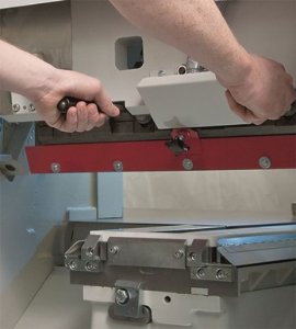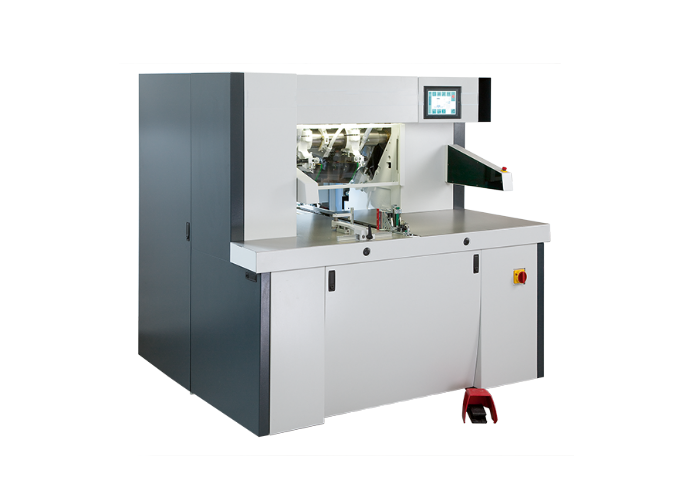 Está certificada por GS y tiene un control PLC operado por pantalla táctil para permitir la elección entre un modo continuo para dos operadores o un modo de retorno solo para un solo operador. El módulo inteligente ServoDrive se encarga de alimentar el material mediante una pinza de alimentación hidráulica infinitamente variable. Simplemente alimente su stock y active el corte. La entrega abatible asegura que cualquier intervención en la estación de corte con el fin de cambiar las cuchillas o las placas de corte será considerablemente más fácil. Las placas de recorte de aluminio fundido de peso reducido, los cassettes de ajuste de cuchillas preajustables y el control desde la pantalla táctil garantizan un cambio de formato fácil de usar. El uso de varias opciones puede ampliar la variedad de aplicaciones.